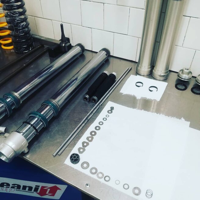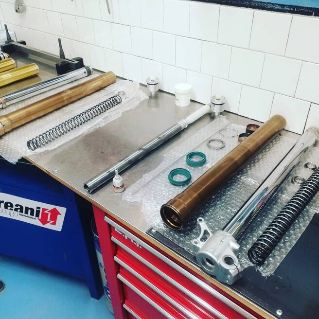 Officina ERT avvalendosi di attrezzature specifiche per ogni tipo di sospensione effettua revisioni forcelle e mono-ammortizzatori di ogni marchio!
